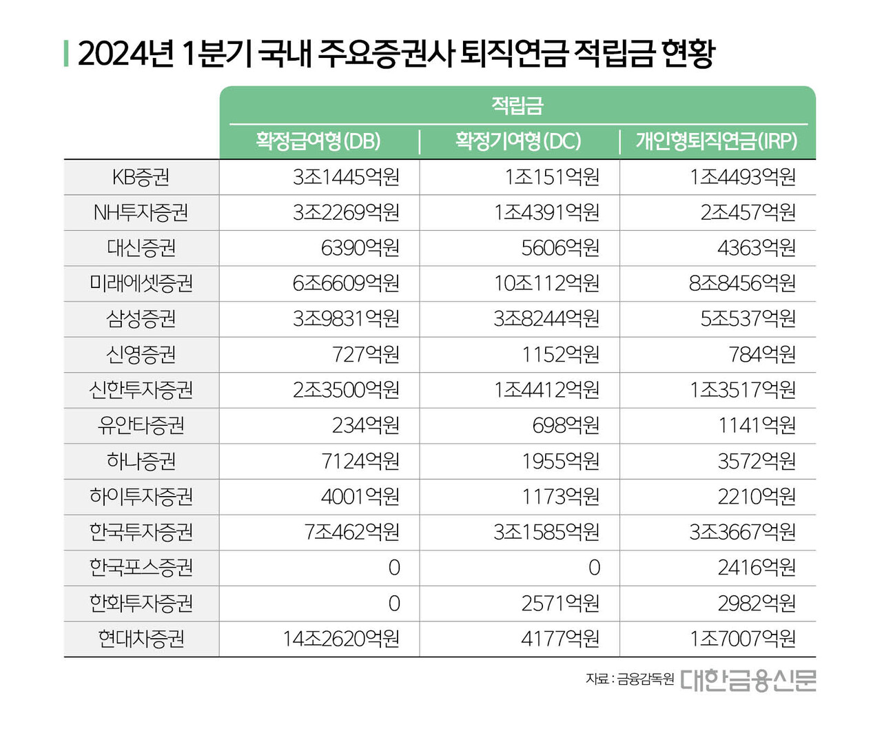 올해 1분기 말 기준 증권사 퇴직연금 적립금 1위는 미래에셋증권으로 25조5177억원(28.1%)의 적립금을 기록해 압도적 1강 체제를 공고히 했다.