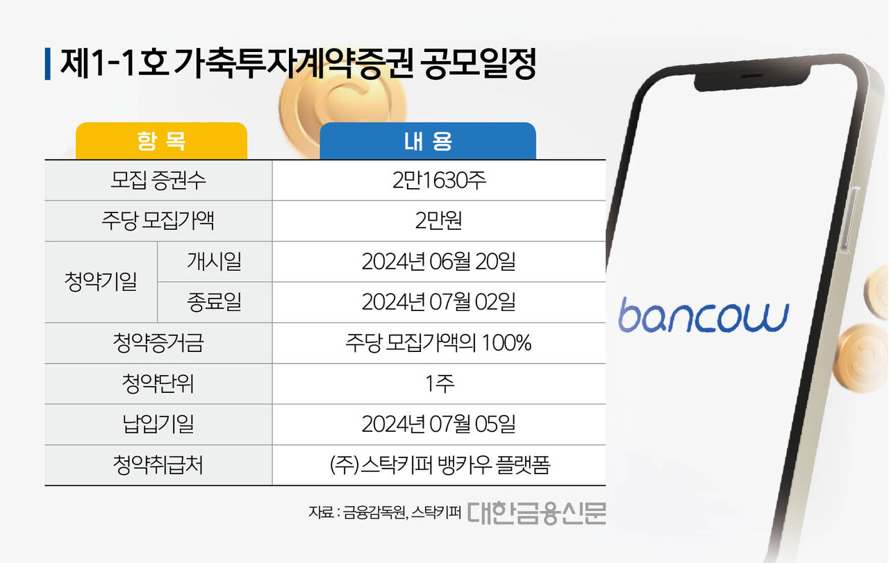한편 1호 가축투자증권 청약은 스탁키퍼 뱅카우 플랫폼에서 진행할 수 있다. 청약 예치금 납부를 위해 NH농협은행의 전용 계좌개설이 필요하다.