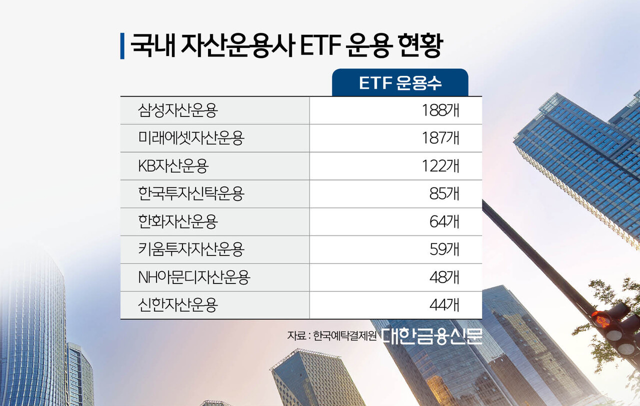 한편 4일 기준 국내 자산운용사 중 가장 많은 ETF 라인업을 보유한 운용사는 삼성자산운용으로 총 188개의 ETF를 운용 중이다.