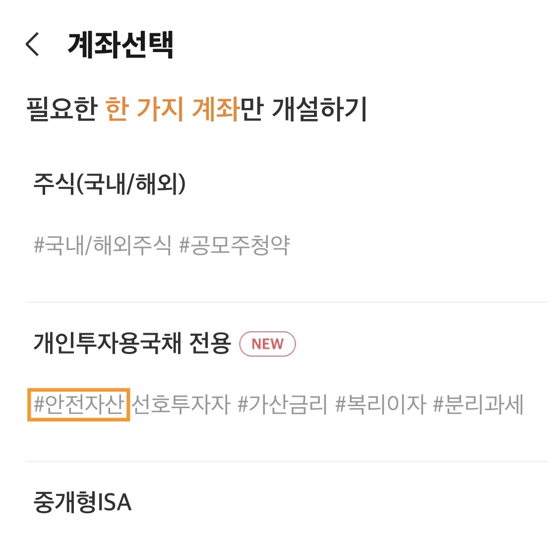 27일 증권업계에 따르면 미래에셋증권의 모바일트레이딩시스템(MTS) ‘M-STOCK’ 내 국채 계좌 개설 화면에는 ‘안전자산 선호투자자’라는 해시태그(#)가 달려 있다.