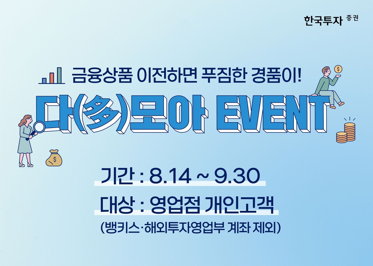 한국투자증권이 오는 9월 30일까지 영업점 계좌 보유 고객을 대상으로 금융상품 이전 이벤트를 진행한다고 14일 밝혔다.