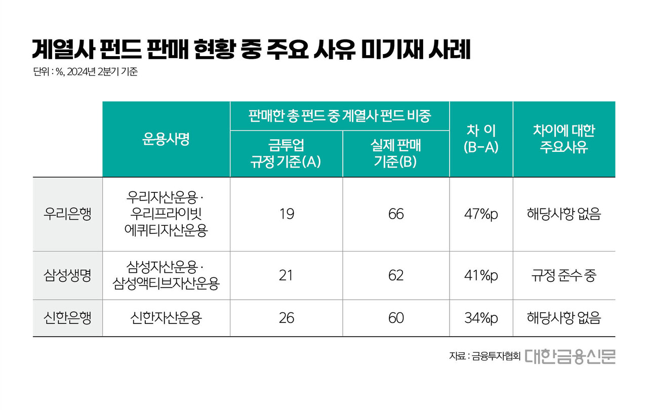 금융사의 계열사 펀드 판매가 여전히 빈번하지만 관련 공시는 불성실하게 이루어지고 있다.