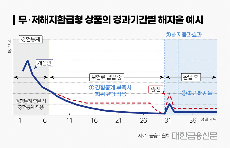 표준형 상품의 누적 유지율을 활용해 해지수준을 역산하거나 보험사별로 30%를 하한으로 합리적 수준을 선택하도록 할 계획이다.