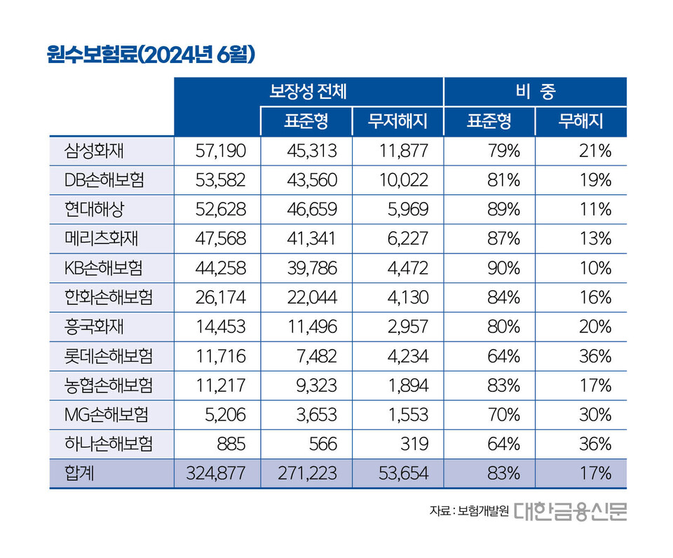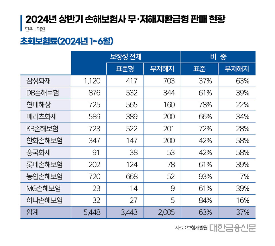11개사 중 무해지보험 비중이 가장 큰 곳은 삼성화재(63%)였다.