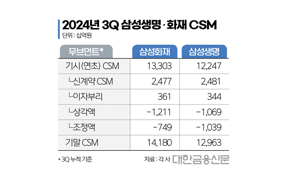 차이를 가른 건 제3보험으로 풀이된다. 장기 보장성보험에 대한 CSM 배수는 삼성화재가 15.6배, 삼성생명이 11.6배다.