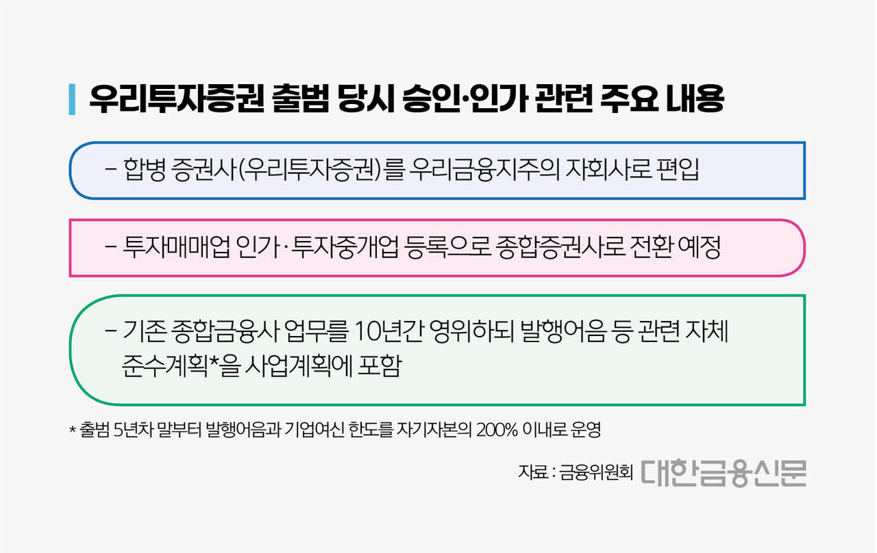 이에 본 인가를 신청하기 전 금융당국와 사전 조율을 거쳐야 하는데 이 과정에서 ‘오케이 사인’을 받지 못했다는 게 우리투자증권의 설명이다.