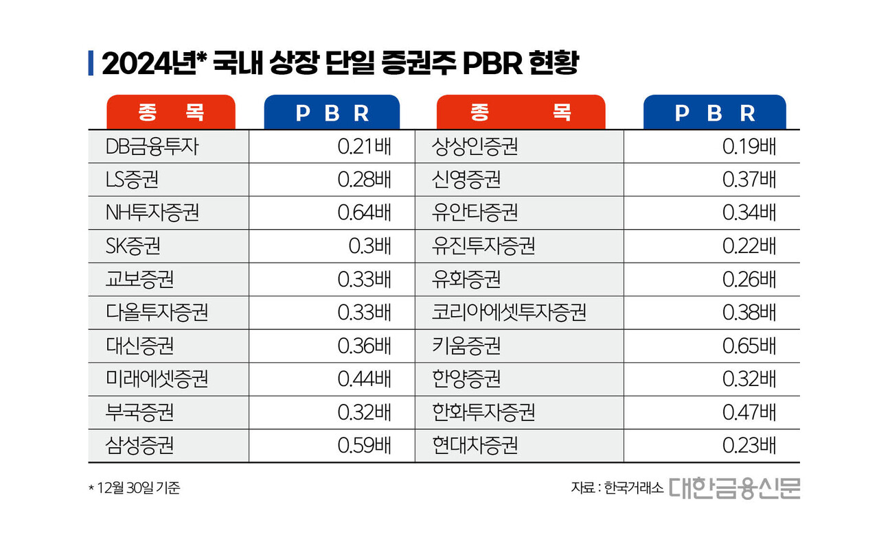 지난해부터 본격화된 밸류업에도 현재까지 주가순자산비율(PBR) 1배를 상회하는 증권주는 등장하지 않았다.