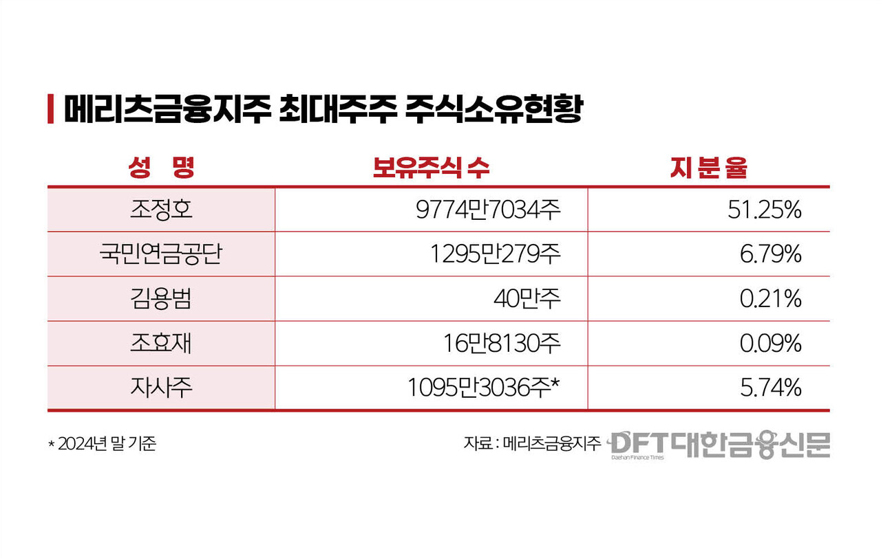매입한 자사주를 소각하게 되면 전체 주식 수가 줄어 기존 주주의 지분율이 높아지게 된다. 실제로 메리츠금융은 지난해 6400억원 규모의 자사주를 소각했고 이 영향으로 조 회장 지분율은 기존 48.06%에서 51.25%로 올랐다.