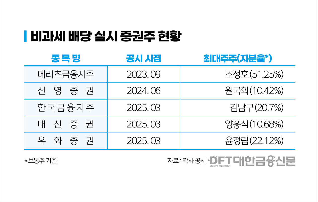 이들 증권사의 공통점은 오너 회사라는 점이다. 최대주주 역시 오너 일가로 구성돼 있어 이들이 비과세 배당의 최대수혜자가 될 것으로 보인다.