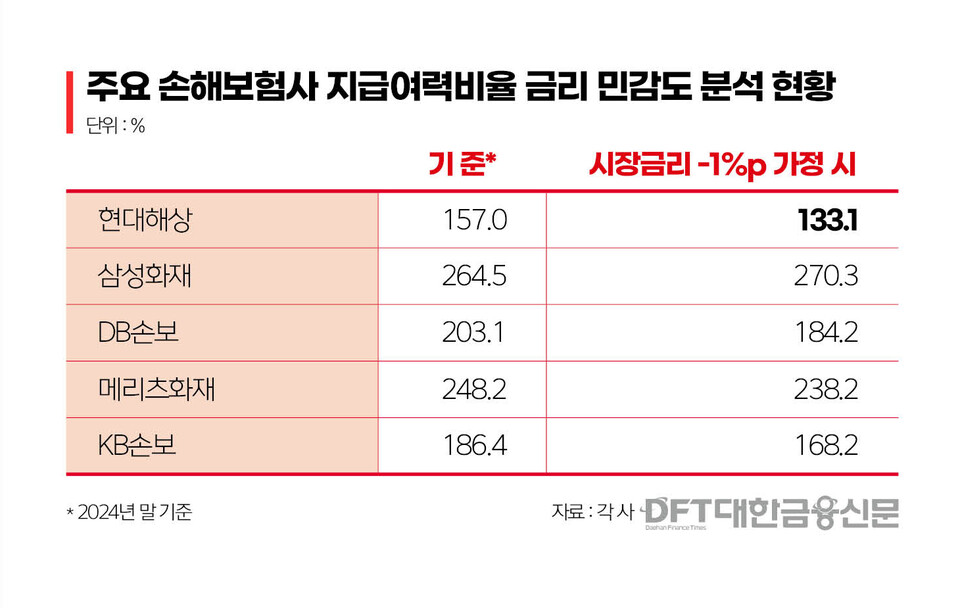 손보에서는 주요 손보 5개사(삼성‧DB‧현대‧메리츠‧KB) 중 현대해상이 금리 하락에 가장 민감했다.