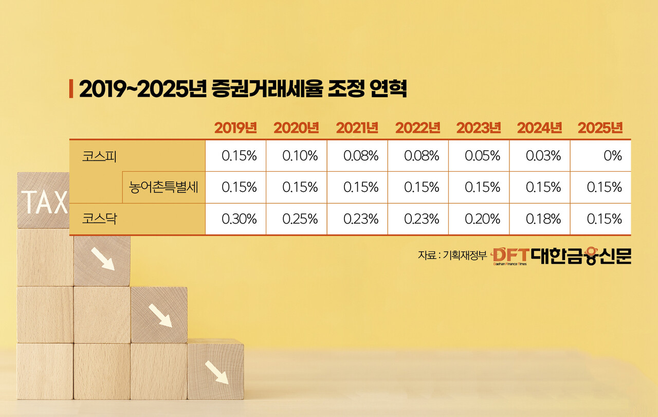 앞서 정부는 금투세 도입을 전제로 거래세율을 꾸준히 내려 왔습니다.