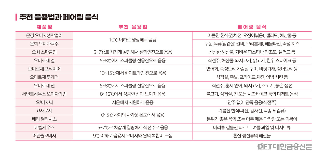 오미자는 여름철에 즐기는 오미자화채처럼 오래전부터 즐겨왔던 계절식이다. 이번 글에선 오미자 발효주를 다루고자 한다. 여름 한정판부터 연중 생산 제품까지 다양하게 만들어지는 오미자 발효주의 세계로 독자 여러분을 초대한다.
