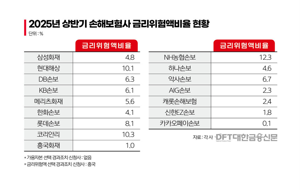 손보사 중에서는 농협손보의 금리위험액비율이 12.3%로 가장 높았다. 손보업권 평균인 6.3% 대비 2배가량 높았다.
